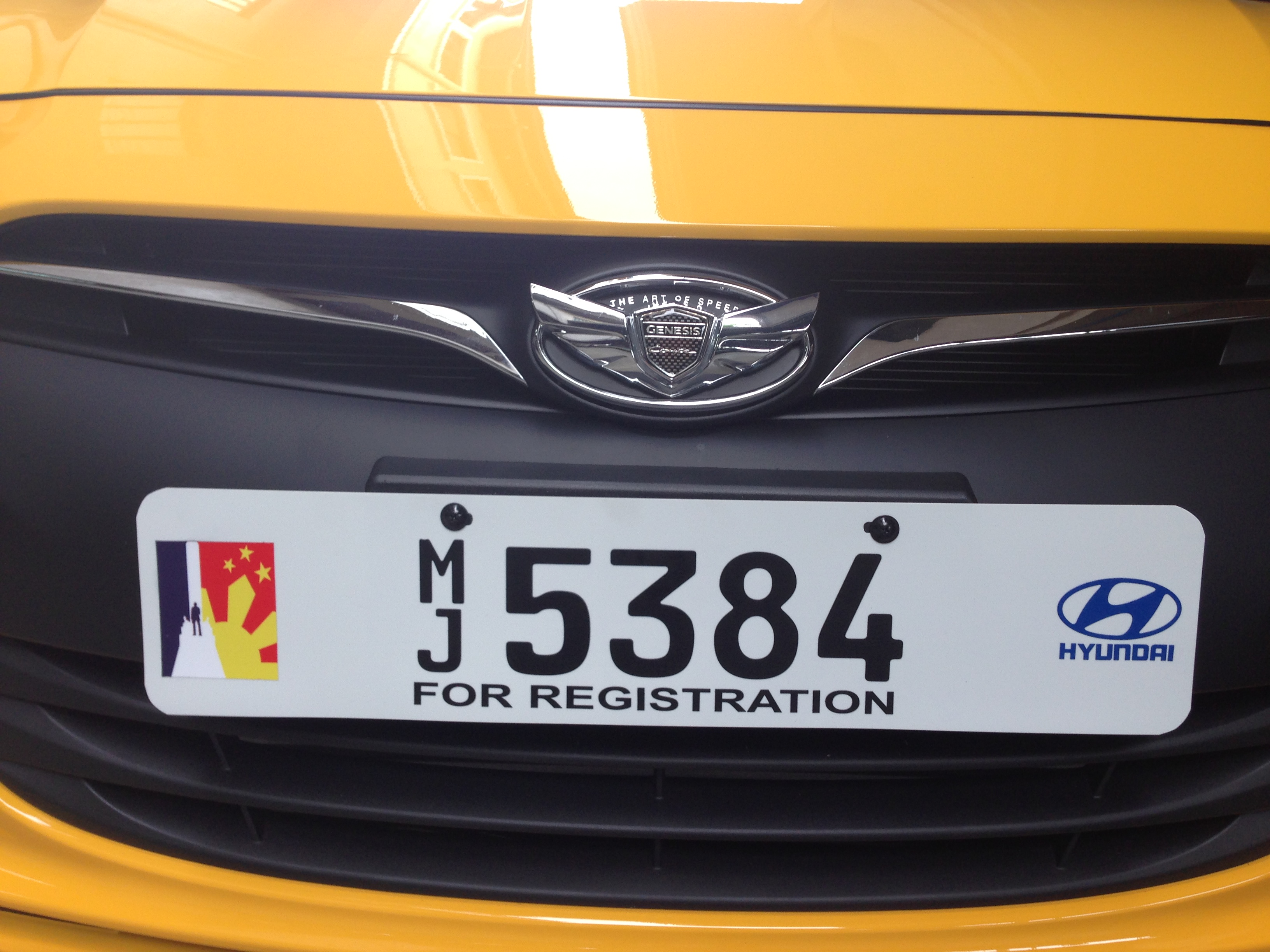 premium white conduction plate hyundai up close – – custom vertical letters